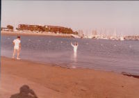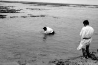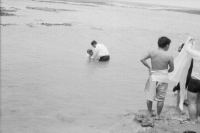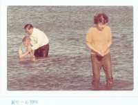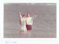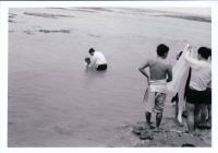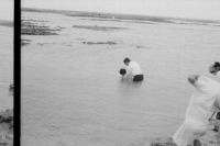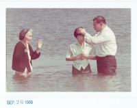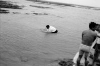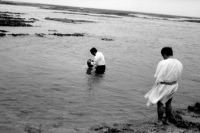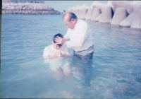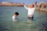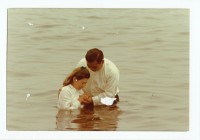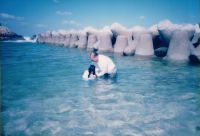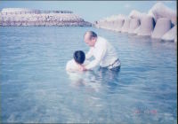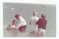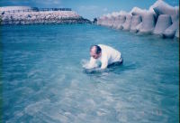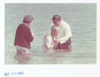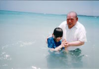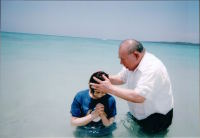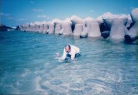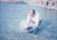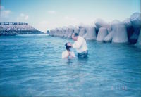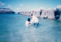 | 沖縄の海で秋田県娘さんが洗礼受けに同行した | ||