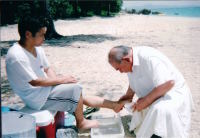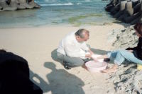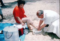 沖縄での洗礼式のあとの洗足式